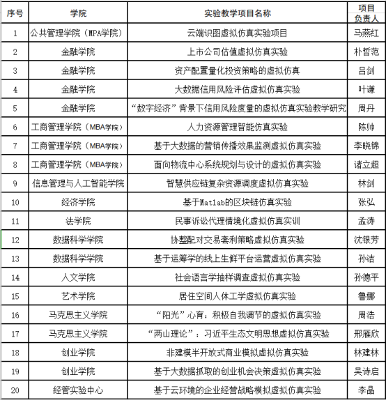 20个项目为省级虚拟仿真实验教学项目,具体名单公示如下: