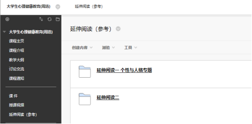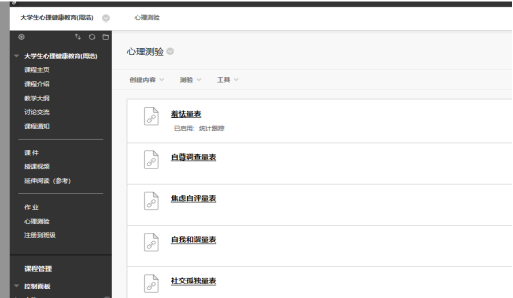周浩老师在教学安排上采用中国大学MOOC平台的慕课资源,同时借助QQ群、校内BB平台等辅助工具进行在线授课,有针对性地在BB平台上建立心理学分享空间,包括课程介绍、教学大纲、课件、授课视频、延伸阅读、作业、心理测验等资料,为学生提供了良好的在线学习环境。考虑到过度冗长的资料会让学生处在信息流的汪洋之中,所有心理课程资料的分享将以适度合理为首要原则,有计划有安排地逐步上传发布,全力配合课程的进度。