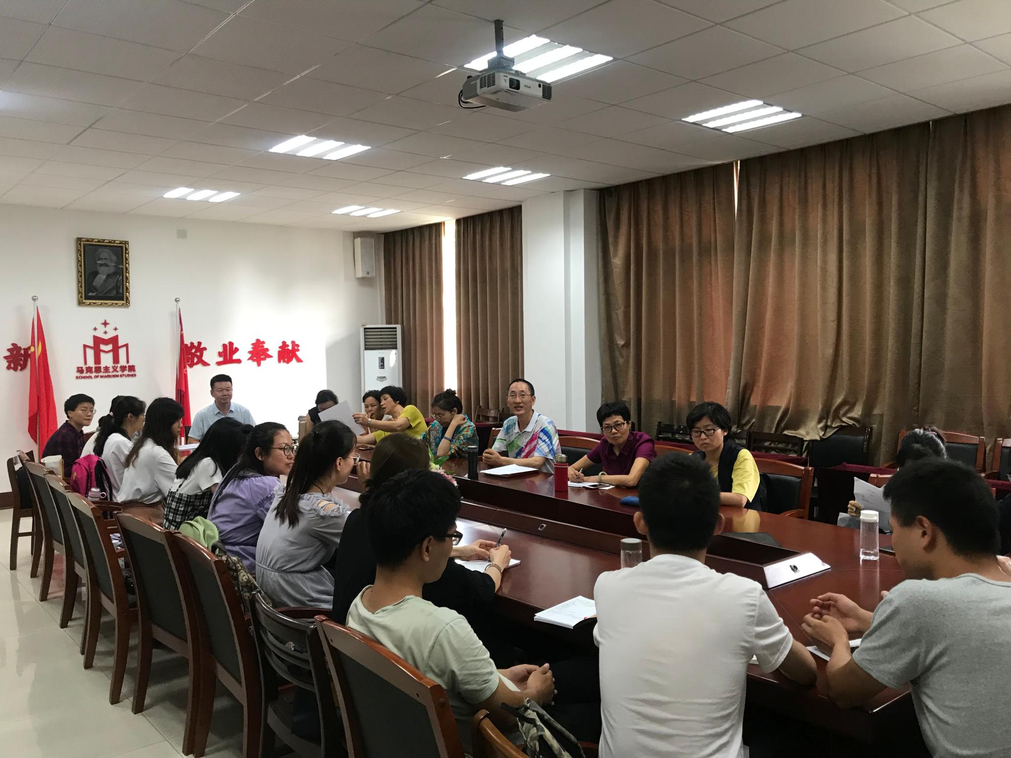 新老生见面会结束后,2019级全体新生与伦理学硕士点的硕士生导师、任课教师在学院211教室进行了交流。交流会上,老师和同学分别介绍了自己,硕导们介绍了自己的研究领域、对学生的要求等等,同学们也表达了自己的目标和期望,师生间进行了第一次正式的见面,对彼此有了了解,为接下来的硕士生导师与2019级研究生“双向选择”工作打下基础。