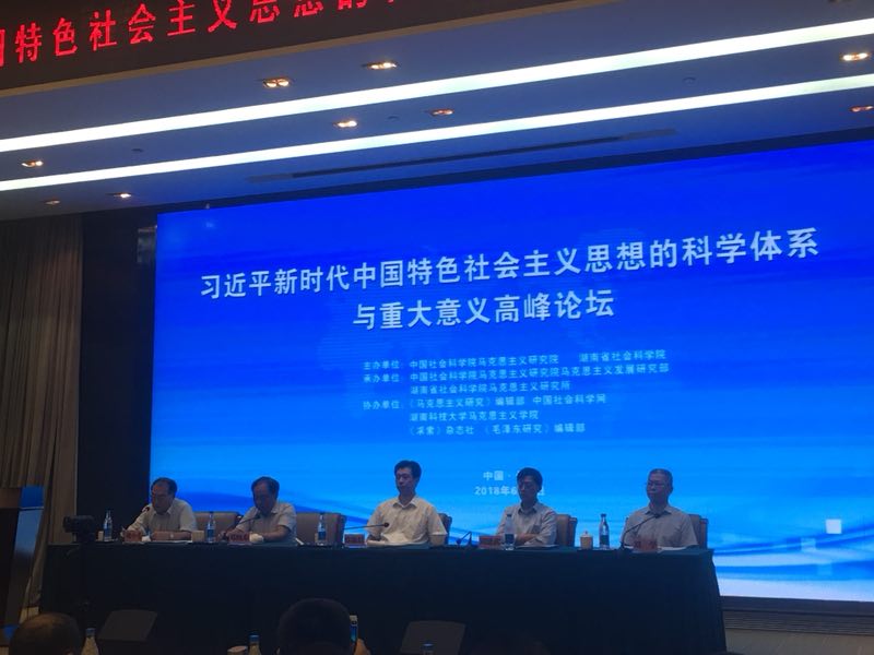 2018年6月9日,由中国社会科学院马克思主义研究院与湖南省社会科学院共同主办的“习近平新时代中国特色社会主义思想的科学体系与重大意义”高峰论坛在长沙举办,来自中国社会科学院、清华大学、中国人民大学、南京大学、武汉大学、厦门大学、湖南大学等单位的专家学者170余人参加论坛。中共湖南省委常委、宣传部部长蔡振红出席会议并讲话。肉番