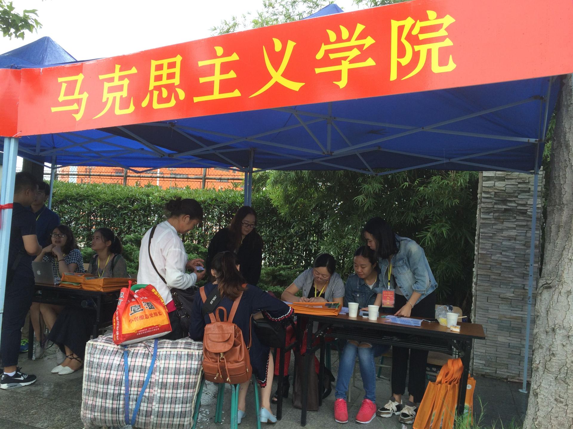 早上7:30,迎新工作人员就早早地候在文化长廊的迎新接待点上,等待着远道而来的新生以及家长们。虽然天公不作美,淅淅沥沥地下着雨,但是并没有浇灭迎新工作人员和志愿者的热情,他们克服了天气的影响,反而更加用心地投入到服务新生的工作中去。为了让新生尽快熟悉新的环境,更快地融入学校的生活,志愿者们向新生们简单的介绍了学校的楼层分布,生活注意点,为他们将来的生活提出了自己切身的建议。他们用真诚的微笑温暖每一位新生,用热情的服务感染每一位新生,他们让前来报到的师弟师妹们感受到离家求学后并不孤单,让他们在异乡也能够体会到家的温暖。在全体工作人员有条不紊的带领下,肉番