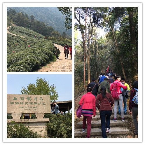 早上9:00,老师们从九溪入口处拉开了游十里画廊的序幕,老师们徜徉在清新的茶园里,沐浴着明媚的阳光,呼吸着新鲜的空气,3个小时不知不觉过去了,翻过了五云山,寻找五朵祥云,游十里琅珰美景,欣赏狮峰茶园、最后来到龙井村,大家闻着茶香,品着好茶,与茶相伴的你我,渲染成了这个春天最美好的风景。