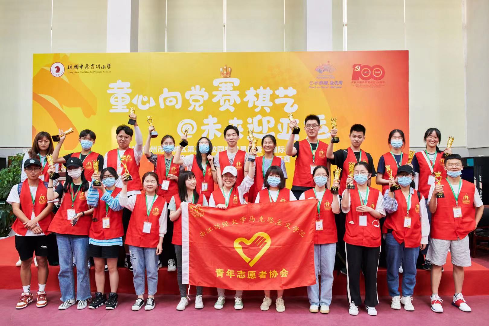 青年志愿者协会的志愿者们在早上7点55分准时到达杭州市南肖埠小学,展开了“全国百城千县万乡全民棋牌推广工程”2021年杭州市上城区第二届校园棋类星锐赛(国际象棋项目)暨杭州市第五届“南小杯”国际象棋公开赛志愿活动。