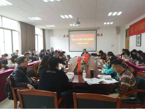 会议强调,学习好、宣传好、贯彻好全会精神是学院当前和今后一个时期的重要政治任务。全体教职工要第一时间领悟六中全会的核心要义,推动全会精神往深里走、往实里走、往心里走,并且要第一时间将全会精神融入到课堂教学中,贯彻好思政课是落实立德树人根本任务的关键课程作用,传播好的党的思想,引导广大青年学生坚定不移跟党走。