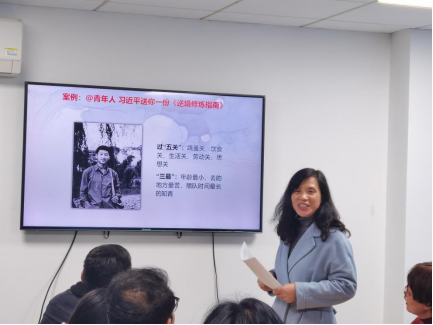 《中国传统文化》课程负责人朱巧香老师对课程建设情况进行了汇报,在教学内容中融入了课程思政教学及育人目标。她从中国传统文化中被称为三不朽人物之一王阳明的“志不立天下无可成之事”开始,谈大学生立志的重要性,旨在激励青年志存高远、激发奋进潜力,“立志而圣则圣矣,立志而贤则贤矣”。