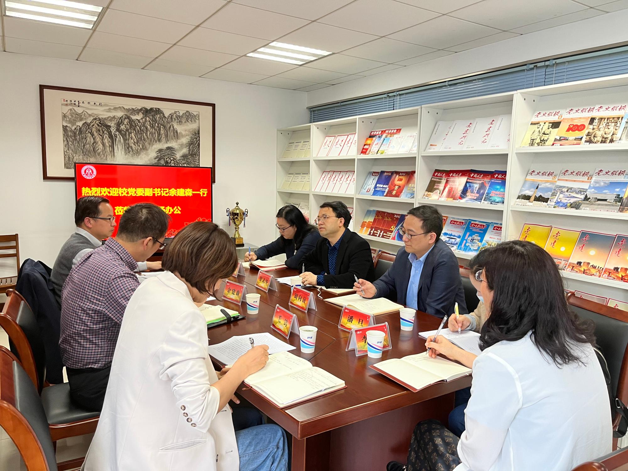 4月21日下午,校党委副书记余建森,党委委员、宣传部部长楼胆群,宣传部副部长毛鸽一行到肉番