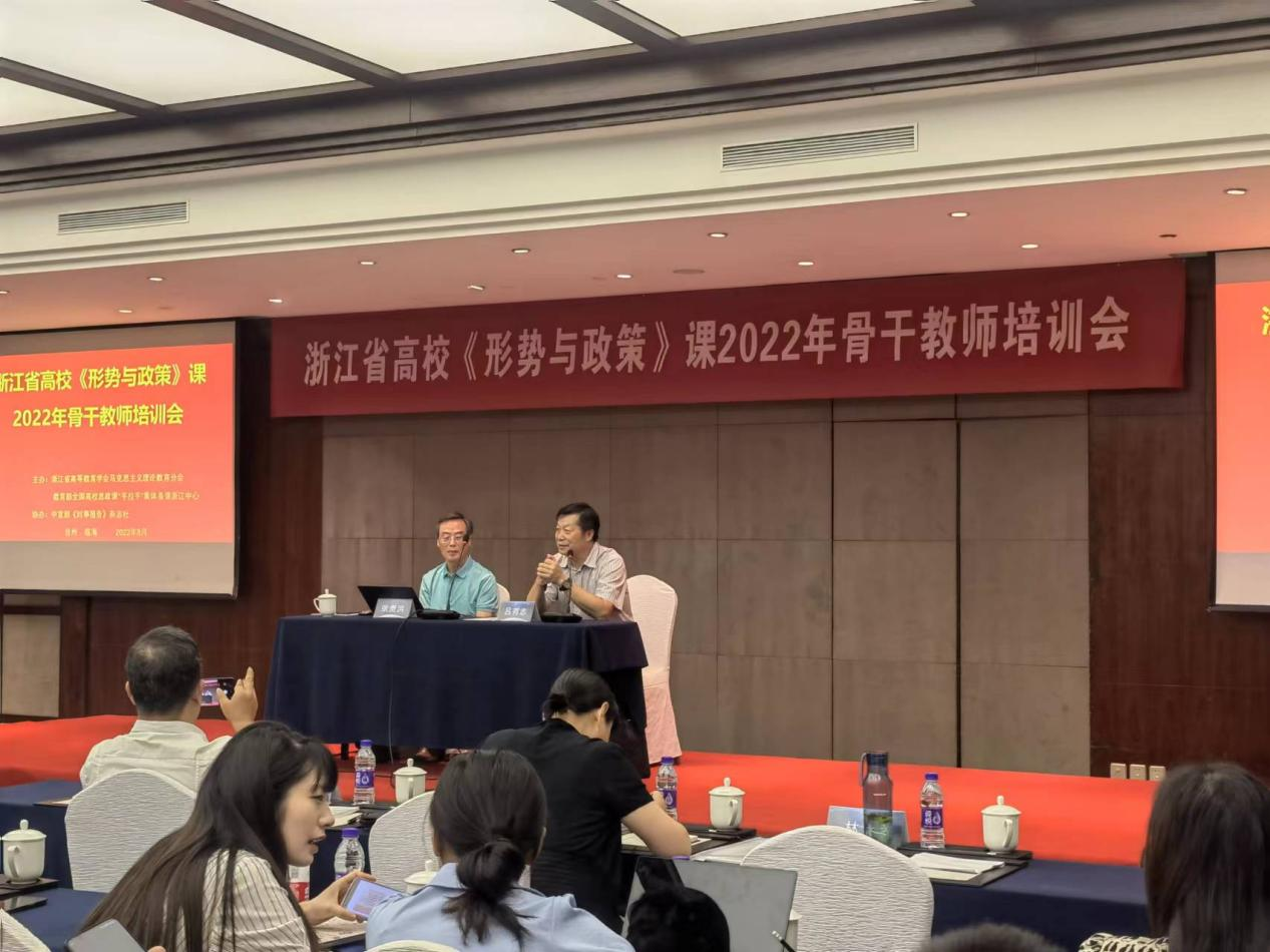 教师参加2022年浙江省高校《形势与政策》课程暑期备课会。本次会议由浙江省高校《形势与政策》课教学研究会、教育部全国高校思政课“手拉手”集体备课中心(浙江大学—浙江省)主办、中宣部《时事报告》杂志社协办。