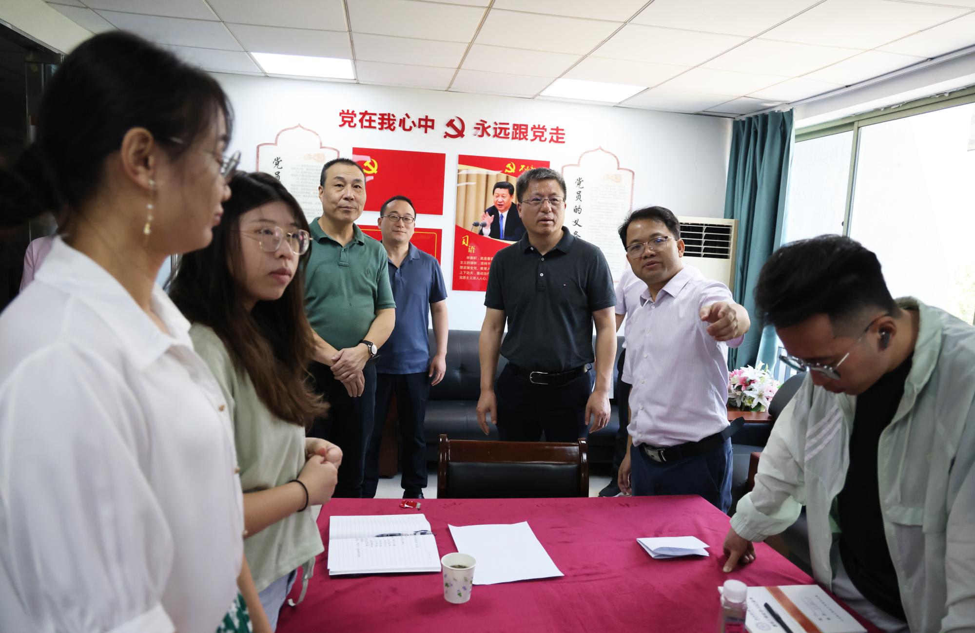 的走廊文化建设予以了充分肯定。随后他们走进会议室,与正在开备课会的马原教研室教师进行了亲切的交谈,了解新学期教师们的工作情况,并充分肯定在教师节仍孜孜不倦坚守在工作岗位的老师们,感谢他们为学校教育事业所作的贡献与努力,魏江表示这样的集体备课活动特别好,在讨论中促进教师的教学水平不断精进,教学质量不断提高,这样的活动要及时总结经验,并予以推广。