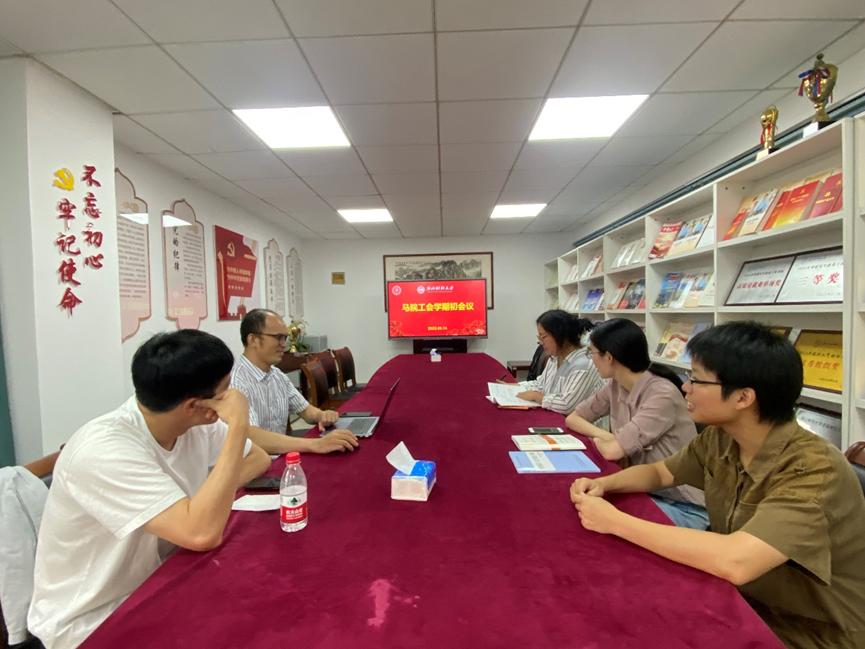 分工会工会委员在学院召开了2023年新学期初工作会议,讨论秋学期校工会和分工会的工作安排。会议由分工会主席肖云龙主持,副主席徐晓燕、委员宋维维、李芳园、王江红、周浩出席了会议。
