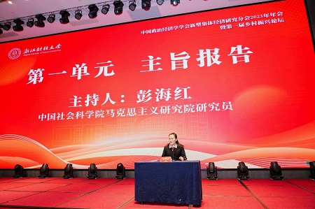 党委书记孙蚌珠教授,吉林财经大学原副校长丁堡骏教授,中共中央党校经济学部徐祥临教授,天津社会科学院党组书记、院长钟会兵教授,湖南社会科学院原院长、原党组书记朱有志教授围绕新型集体经济与乡村振兴理论前沿及重要现实问题进行精彩报告,为参会代表们提供内容丰富的学术盛宴。第一单元主旨报告由中国社会科学院马克思主义研究院彭海红研究员主持。