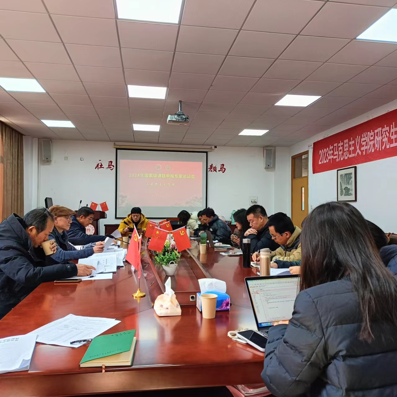 国家级课题的申报工作。拟申报2024年国家级课题的部分教师参加了会议。