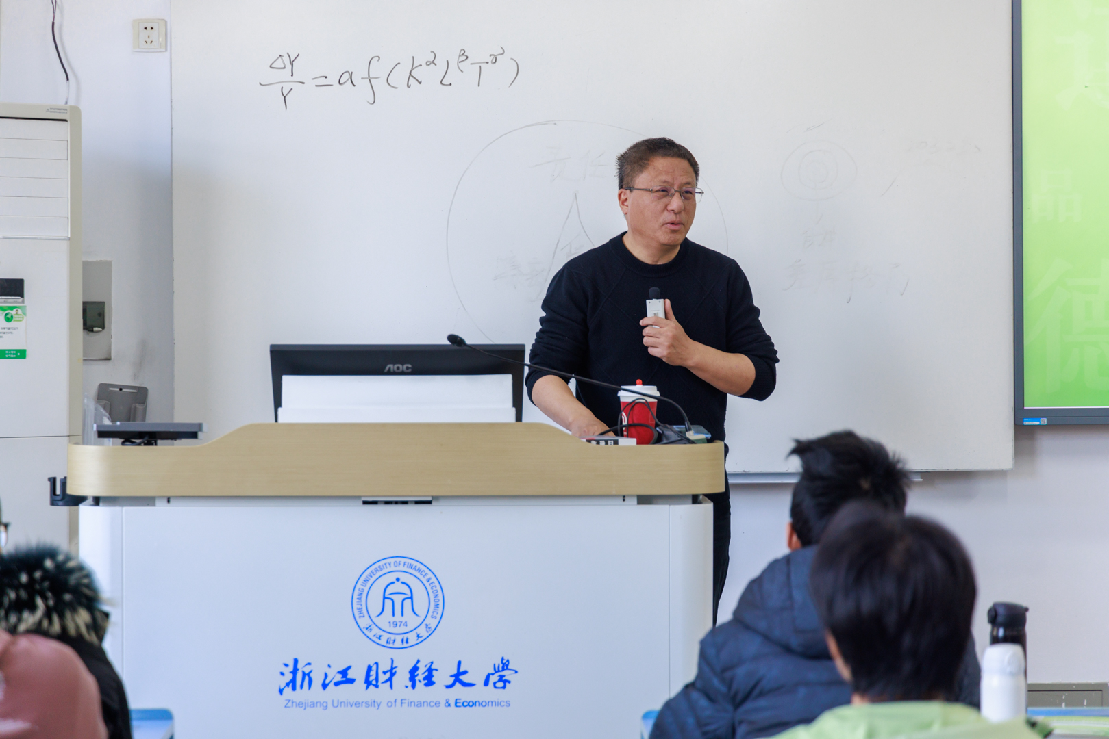 围绕“如何发展实体经济”这一核心命题,魏江书记借助由诺贝尔经济学奖得主罗伯特·索洛(Robert Solow)提出的增长理论进行了现实破题。他引用了该理论中旨在分解增长源泉的核心公式,即产出增长(ΔY/Y)来源于技术进步(L)、资本增长(K)与劳动增长(L)的组合贡献。资本层面,他强调要降低对传统资源的过度依赖,引导资本投向更高效、可持续的领域,这与浙江深入践行“八八战略”中的“绿水青山就是金山银山”理念完全吻合;劳动力层面,他提到浙江作为重要人才流入地,持续吸引汇聚全国的年轻人才,为高质量发展提供了丰富的人力资本和创新能力;技术层面,他认为这是培育新质生产力的核心引擎。魏江书记阐明科技创新如何驱动产业升级,并同时激活国内消费与对外开放两大市场。他指出,一个高效的社会主义市场经济体系是支撑这一切的运行基础,而实现区域平衡、提升人民获得感的生态文明建设则是发展的最终目标,两者在浙江的深入实践中得到统一。