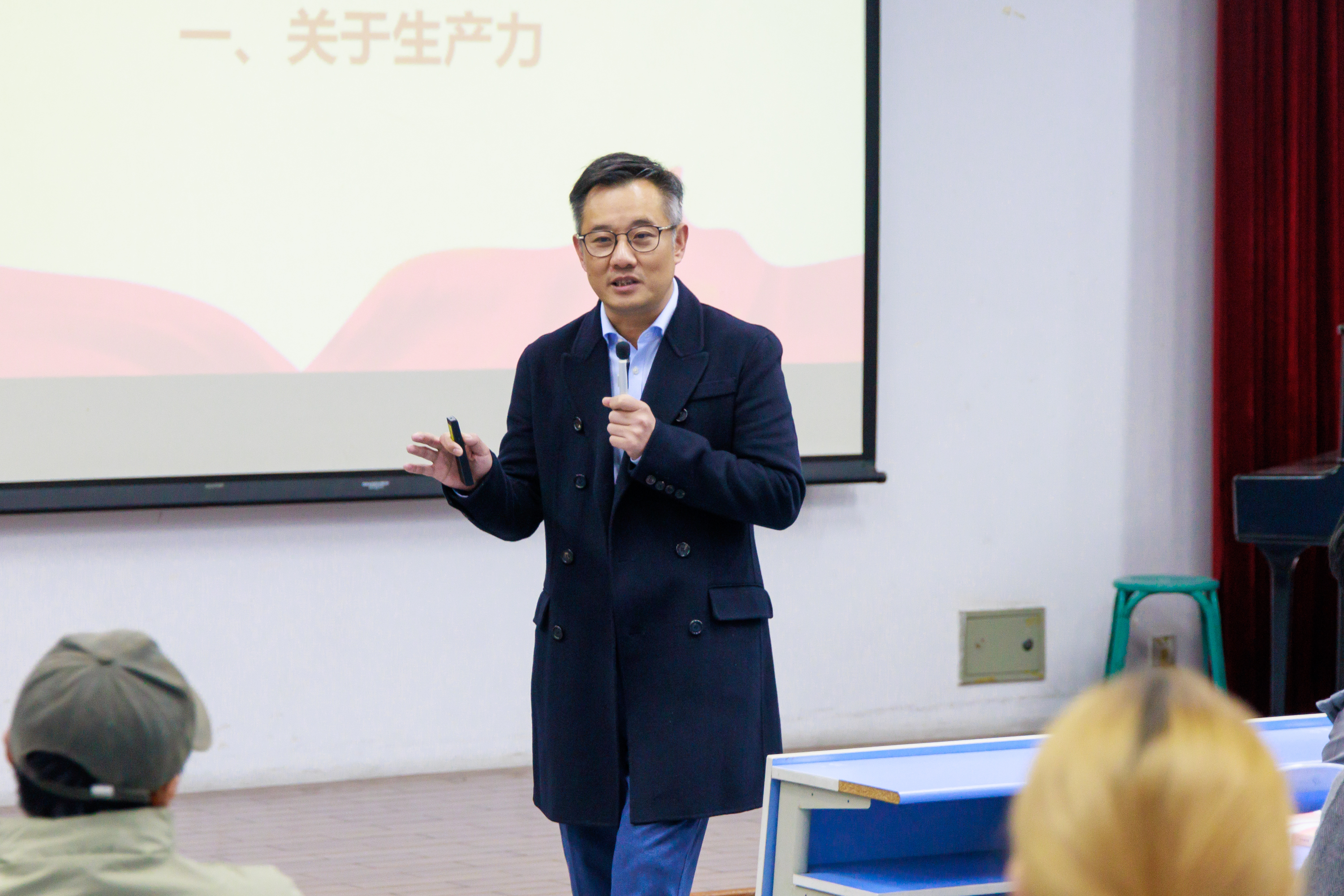 程爽副书记从重温生产力理论出发,把握历史发展的脉络,回顾了马克思主义生产力理论的基本观点,强调生产力是人类社会发展的根本动力。从“人的依赖性社会”到“物的依赖性社会”,再到“个人全面发展社会”,生产力水平的提升推动着社会形态的演进。