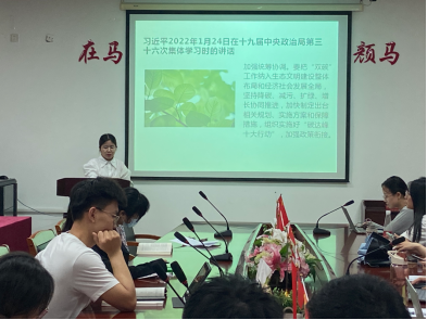接着,带领大家学习“习近平总书记关于社会主义生态文明建设的重要讲话”。习近平总书记强调,党的十八大以来,我们坚持绿水青山就是金山银山的理念,全面加强生态文明建设,推进国土绿化,改善城乡人居环境,美丽中国正在不断变为现实。同时,我们也要看到,生态系统保护和修复、生态环境根本改善不可能一蹴而就,仍然需要付出长期艰苦努力,必须锲而不舍、驰而不息。