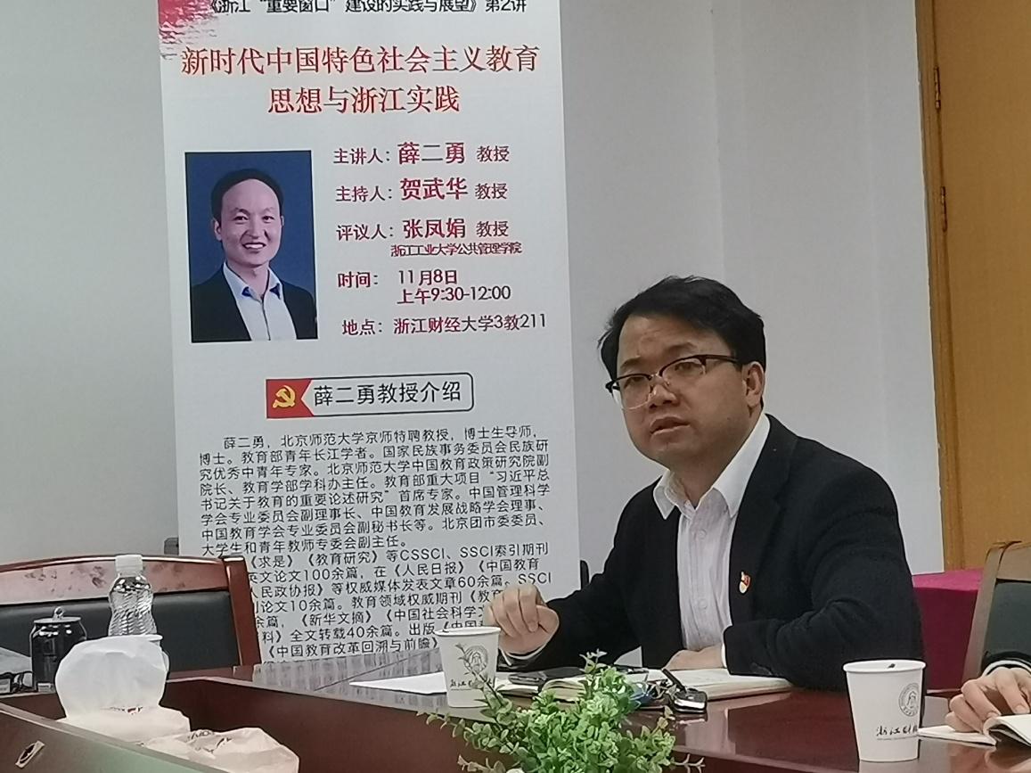 11月8日上午,肉番 在3号楼211会议室举行“新时代中国特色社会主义教育思想与浙江实践”学术交流报告与录制工作。这是肉番承担省社科联之江青年社科学者学术交流论坛课题的第2讲。本讲主讲嘉宾为教育部长江学者青年学者、北京师范大学中国教育政策研究院副院长、京师特聘教授、博士生导师...