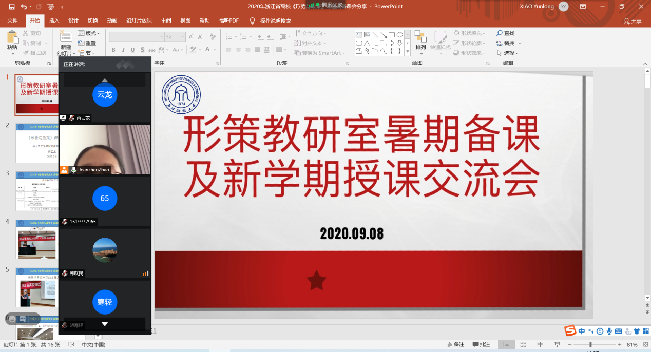 为进一步贯彻落实习近平总书记关于加强高校思想政治理论课建设的指示精神,践行高校思政课“立德树人”的理念,推进高校形势与政策教育,提高课程教学效果,肉番形势与政策教研室于9月8日召开“暑期备课暨新学期授课交流会”,课程教学团队33名教师参加了线上会议。教研室主任赵春珍老师主持本次会...